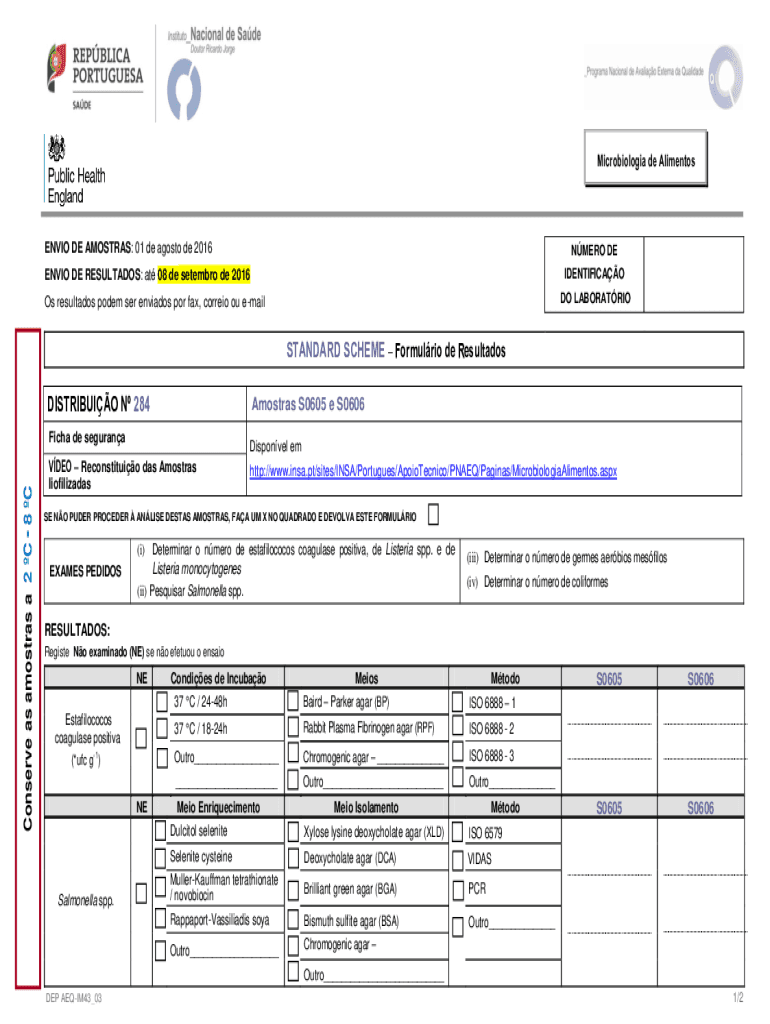 Microbiology de AlimentosENVIO DE AMTRAK: 01 de Acosta de 2016NMERO DE IDENTIFICAOENVIO DE RESULTANTS: at 08 de September de 2016DO Laboratories resultants poem SER environs POR fax, corral of emailSTANDARD