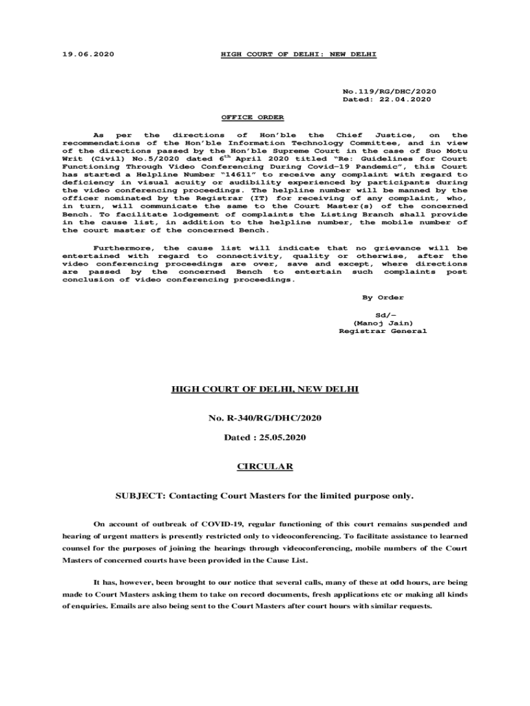 19.06.2020HIGH COURT OF DELHI: New Delhi.119×KG×DHC×2020 Dated: 22.04.2020 OFFICE ORDER As per the directions of Hobble the Chief Justice, on the recommendations of the Hobble Information Technology