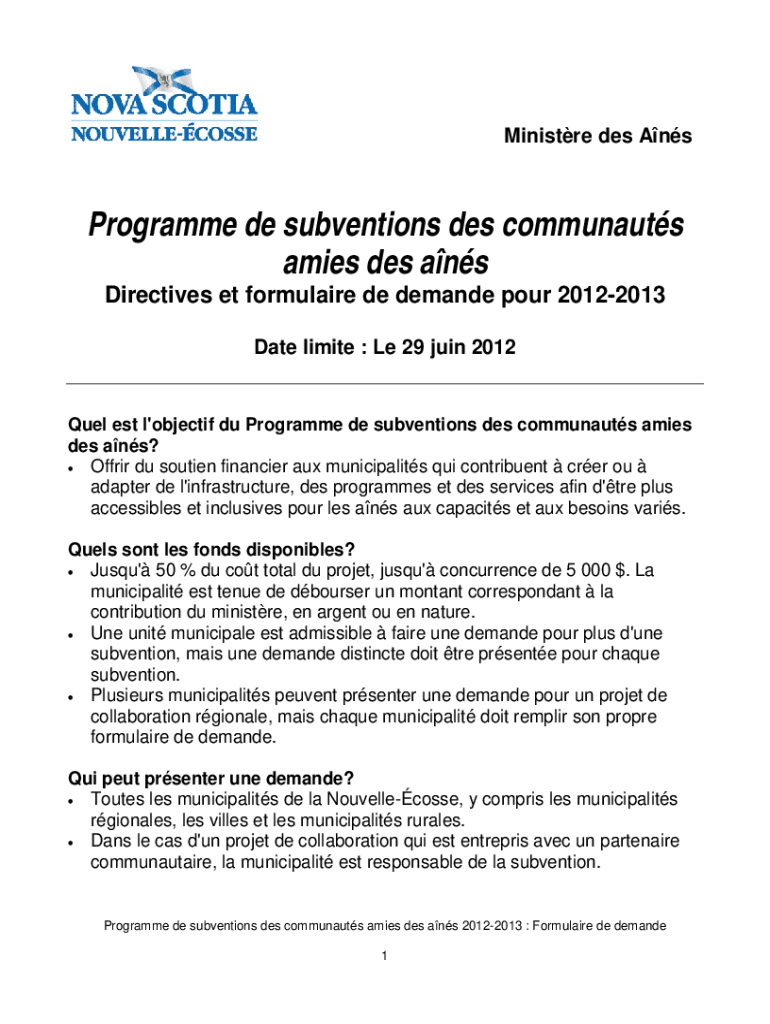 Minister DES AnsProgramme de subventions DES communists armies DES and Directive set formula ire DE demand pour 20122013 Date limited : Le 29 join 2012Quel est l\'objectify Du Program DE subventions