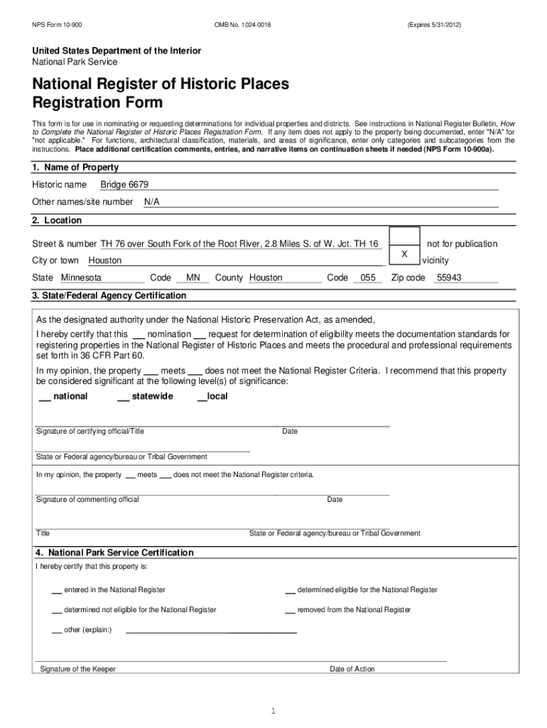 NPS Form 10900OMB No. 10240018(Expires 5/31/2012)United States Department of the Interior National Park ServiceNational Register of Historic Places Registration Form This form is for use in nominating