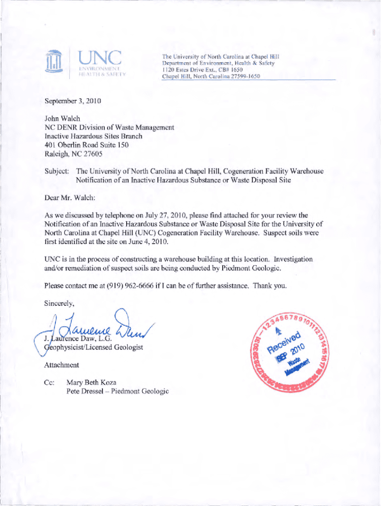 ITIL Uncle 1R× I II I I I ICICI II IT he Uni very it of No Ruth Car Lin an at Ch ape l Hill Department of Env iron men t, Health & Safety 11 20 E TES Drive Ext. , C B× 1650 Ch ape l Hill, No Ruth
