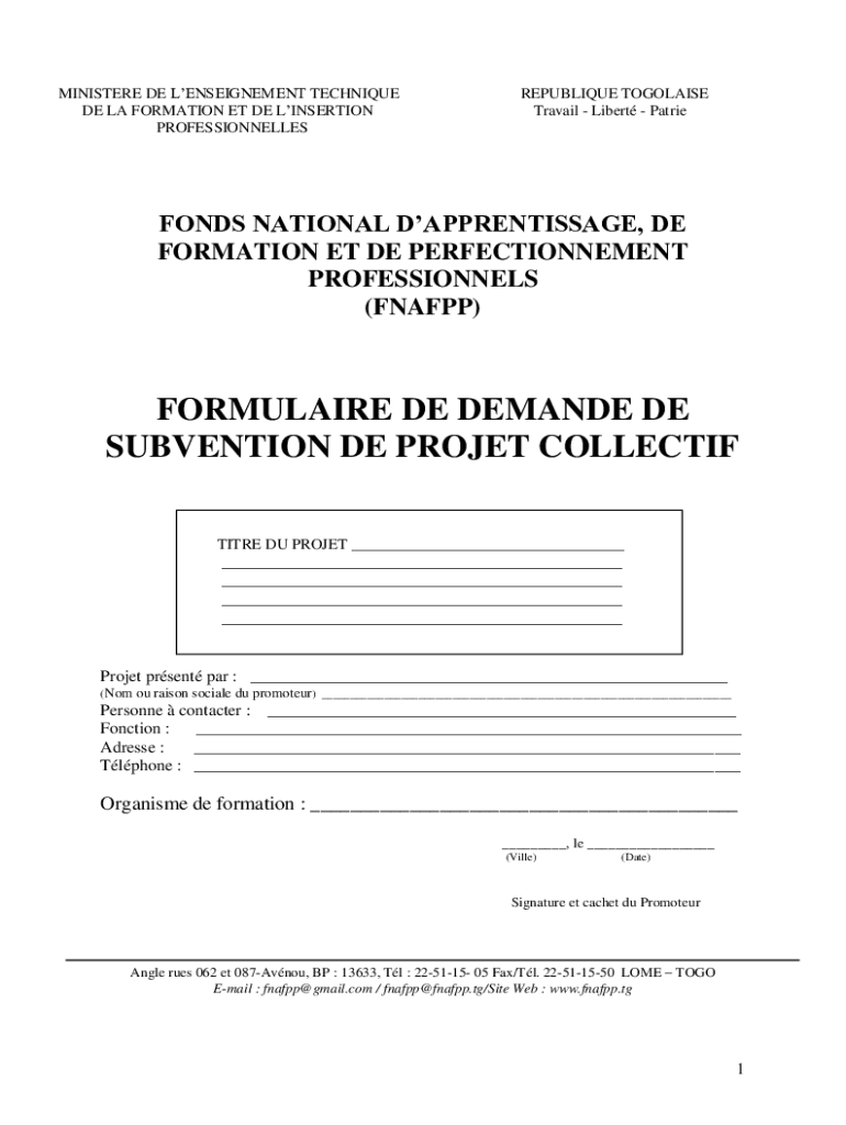 MINISTER DE LENSEIGNEMENT TECHNIQUE DE LA FORMATION ET DEL INSERTION PROFESSIONNELLESREPUBLIQUE TOGOLESE Travail Liberty PatrieFONDS NATIONAL DAPPRENTISSAGE, DE FORMATION ET DE PERFECTIONNEMENT PROFESSIONALS