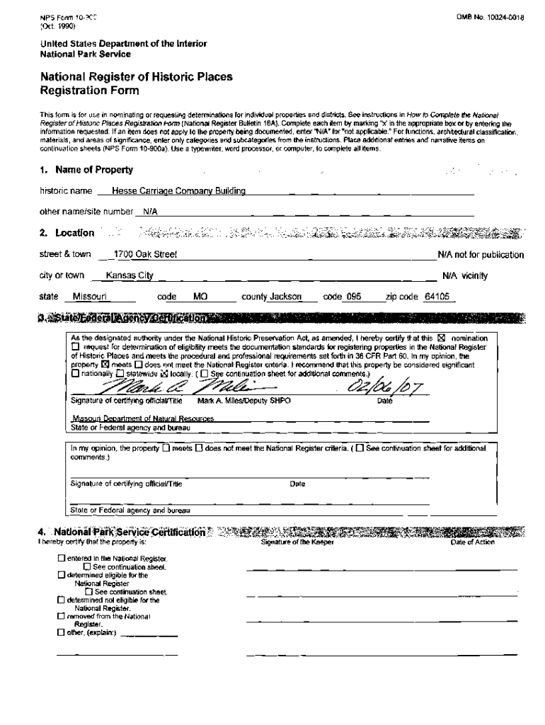 OMB No. 100240018NPS Form 10YC\'[Cut. 11t90×United States Department of the Interior National Park ServiceNational Register of Historic Places Registration Form This form is for use in nominating