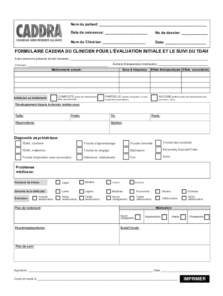 Get the free Trousse d'valuaTion du TdaH de Caddra (Caddra adHd