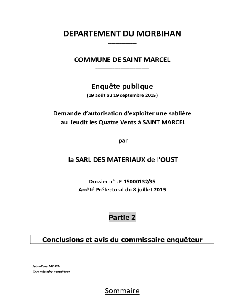DEPARTMENT DU MOYNIHAN ___COMMUNE DE SAINT MARCEL ___Ensure oblique (19 AOT AU 19 September 2015×Demand authorization exploiter one satire AU Lieut LES Square Vents SAINT MARCEL parley SARL DES MATERIAL
