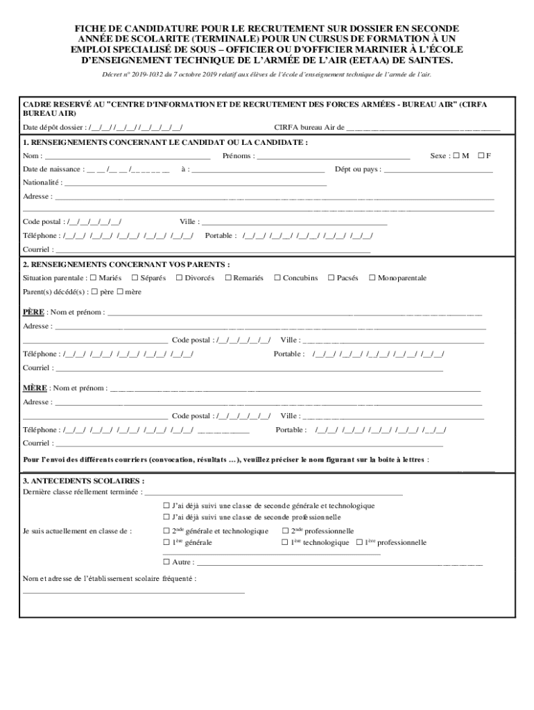 How to fill out fiche de candidature pour