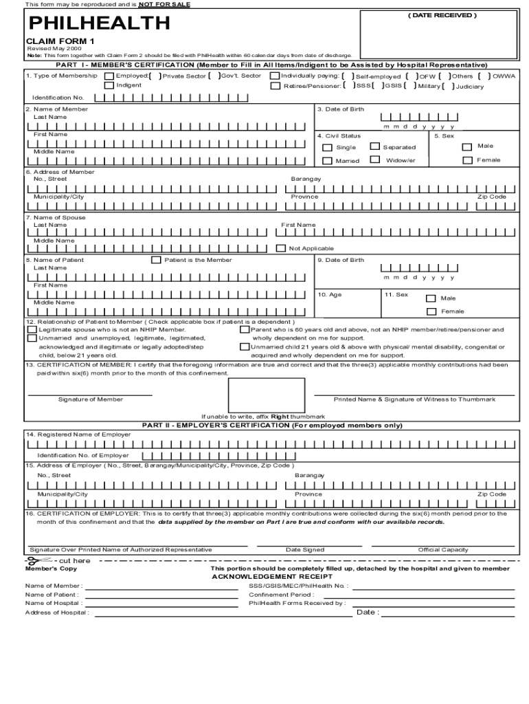 This form may be reproduced and is NOT FOR SALEPHILHEALTH CLAIM FORM 1 Revised May 2000 Note: This form together with Claim Form 2 should be filed with Philomath within 60 calendar days from date
