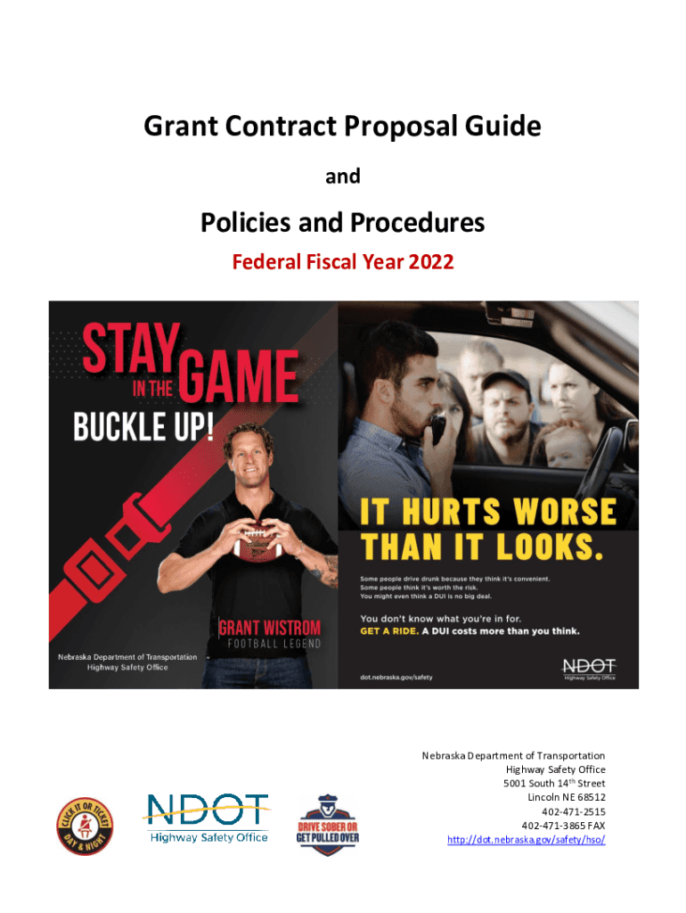 Grant Contract Proposal Guide policies and Procedures Federal Fiscal Year 2022Nebraska Department of Transportation Highway Safety Office 5001 South 14th Street Lincoln NE 68512 4024712515 4024713865
