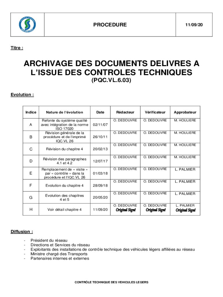 PROCEDURE11×09/20Titre :ARCHIVE DES DOCUMENTS DELIVERED A ISSUE DES CONTROLS TECHNIQUES (PQC.VS.6.03) Evolution :IndiceABNature de evolution Remote Du system quality Alec integration DE la norm ISO