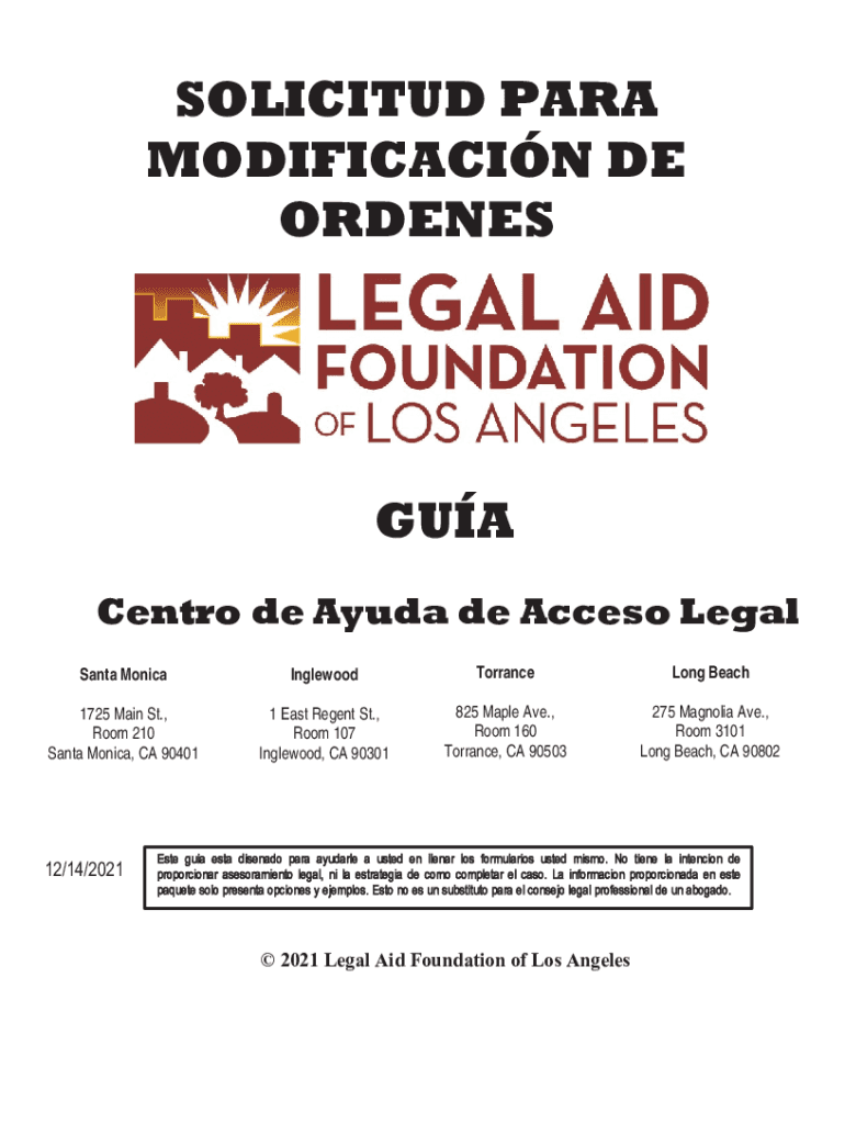 SOLICITED PARA MODIFICATION DE ORDENESGUA CENTR de Ayuda de Acceso Legal Santa MonicaInglewoodTorranceLong Beach1725 Main St., Room 210 Santa Monica, CA 904011 East Regent St., Room 107 Inglewood,