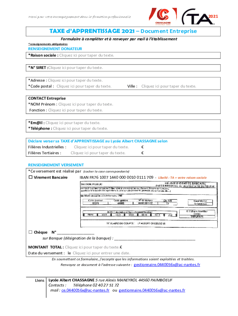 Merci pour vote accompaniment days la formation professionnelleTAXE dAPPRENTISSAGE 2021 Document Enterprise Formula ire computer ET enjoyed par mail ltablissement *restatements obligatoiresRENSEIGNEMENT