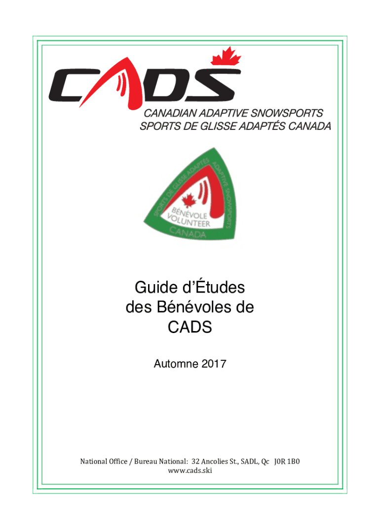 Guide études DES Involves DE CADS Autumn 2017National Office / Bureau National:32 Anchovies St., SAIL, QcJ0R 1B0www.cads.skiCADSVOLUNTEER STUDY GUIDE V7Mission CADS offer aux personnel giant Alec