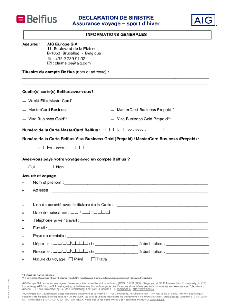 Get the free PDF sport d'hiver declaration de sinistre - informations generales