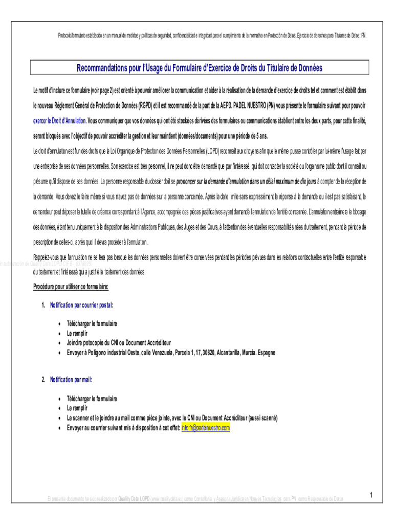 Get the free Formulario para el ejercicio de Derechos de Acceso, Rectificacin, Cancelacin u Oposi...