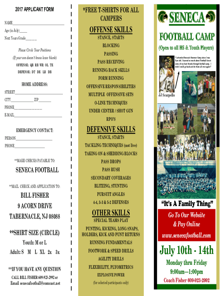 2017 APPLICANT FORM NAME___ Age (in July)___*FREE SHIRTS FOR ALL CAMPERSOFFENSE SKILLS STANCE, Sportsnet Years Grade___BLOCKINGPlease Circle Your Positions (If your son doesn't\'t know leave blank)