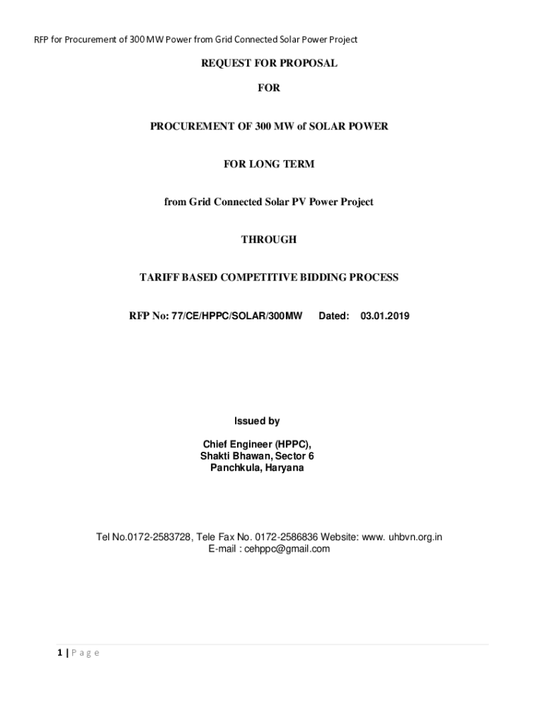 Get the free REQUEST FOR PROPOSAL FOR PROCUREMENT OF 300 MW of SOLAR ... - uhbvn org