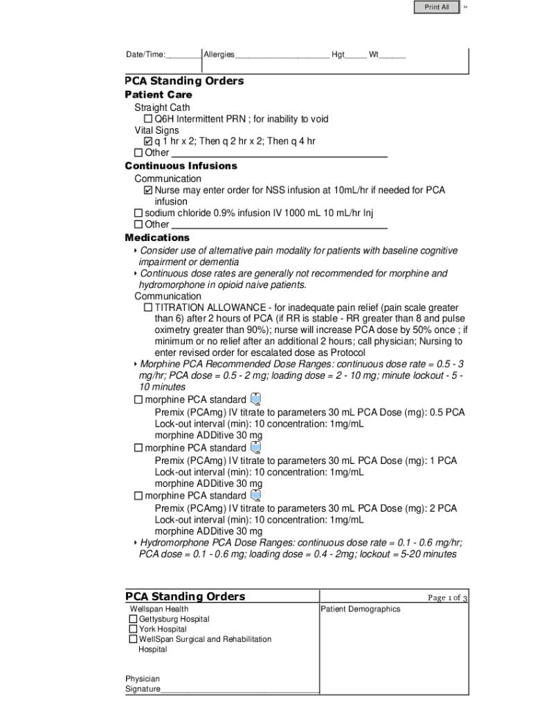 Print All643Date×Time:___ Allergies___ Hgt___ Wt___PCA Standing Orders Patient Care Straight Path c Q6H Intermittent PRN ; for inability to void d e f g Vital Signs b q 1 hr x 2; Then q 2 hr x 2;