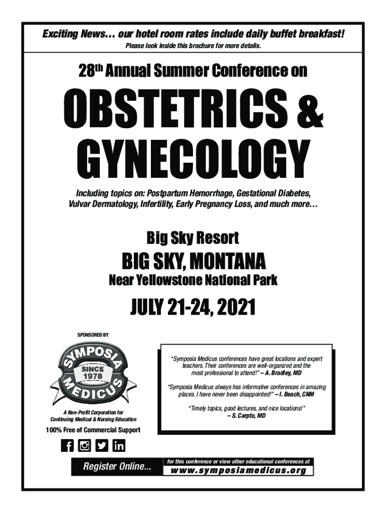 Exciting News our hotel room rates include daily buffet breakfast! Please look inside this brochure for more details.28th Annual Summer Conference obstetrics & GYNECOLOGY Including topics on: Postpartum
