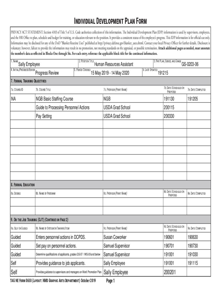 Individual Development Plan Form PRIVACY ACT STATEMENT: Section 4103 of Title 5 of U.S. Code authorizes collection of this information. The Individual Development Plan (IDP) information is used by