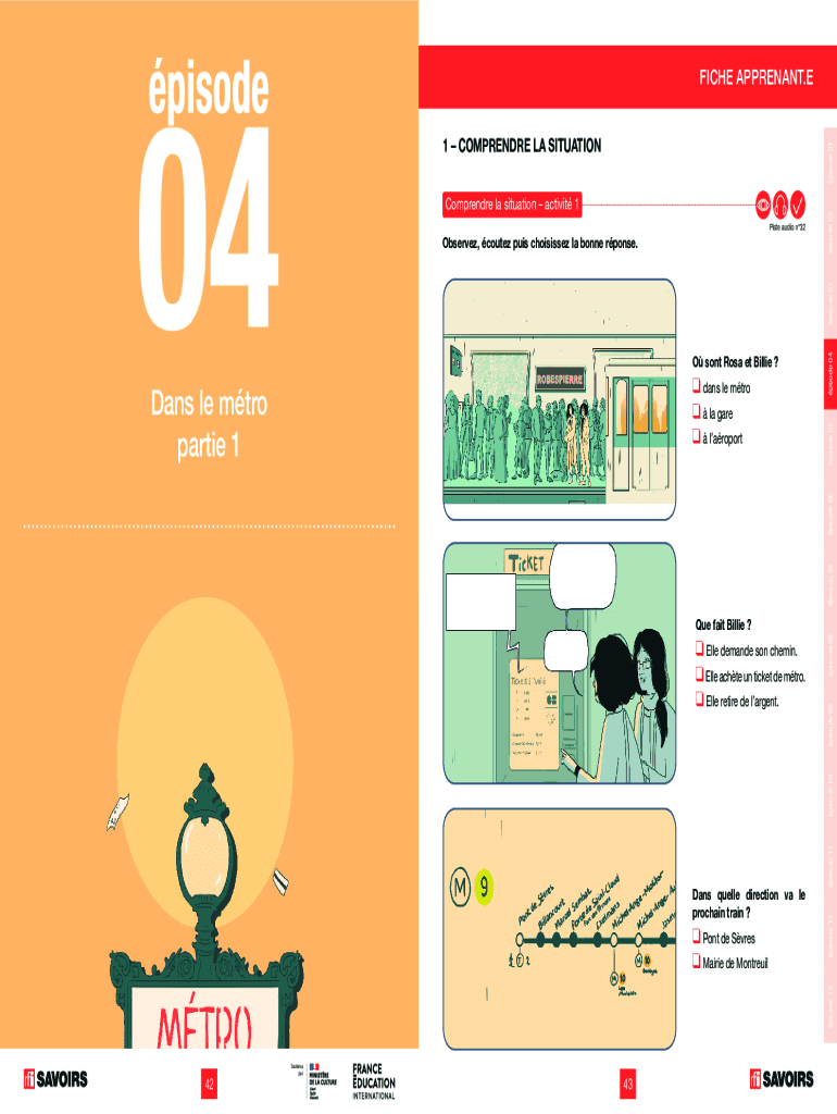 FICHE APPURTENANT.EComprendre la situation activity 1 Piste audio n32 days LE metro lag are laroportpisode 07pisode 06Dans LE metro parties 1pisode 05O sent Rosa et Billie ?episode 04pisode 03Observez,