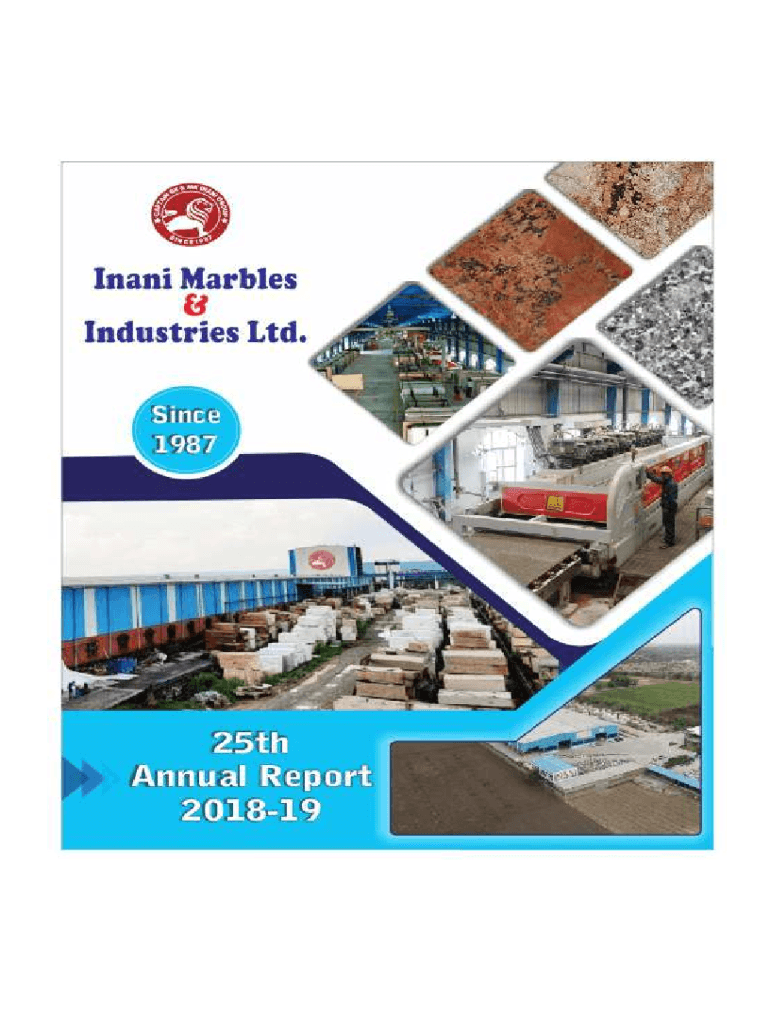 25th Annual Report INANE MARBLES & INDUSTRIES LTD. IN NO. L14101RJ1994PLC008930 ANNUAL REPORT 2018 19 Board of Directors Capt. Suresh Kumar Inane, Sari Mahesh Kumar Inane Sari Dinesh Kumar Inane,