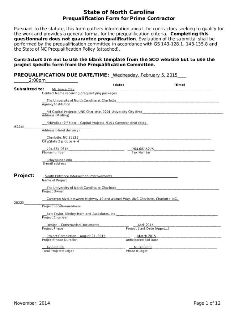 Instructions for the form instructions to prequalify - Kinston Public Services