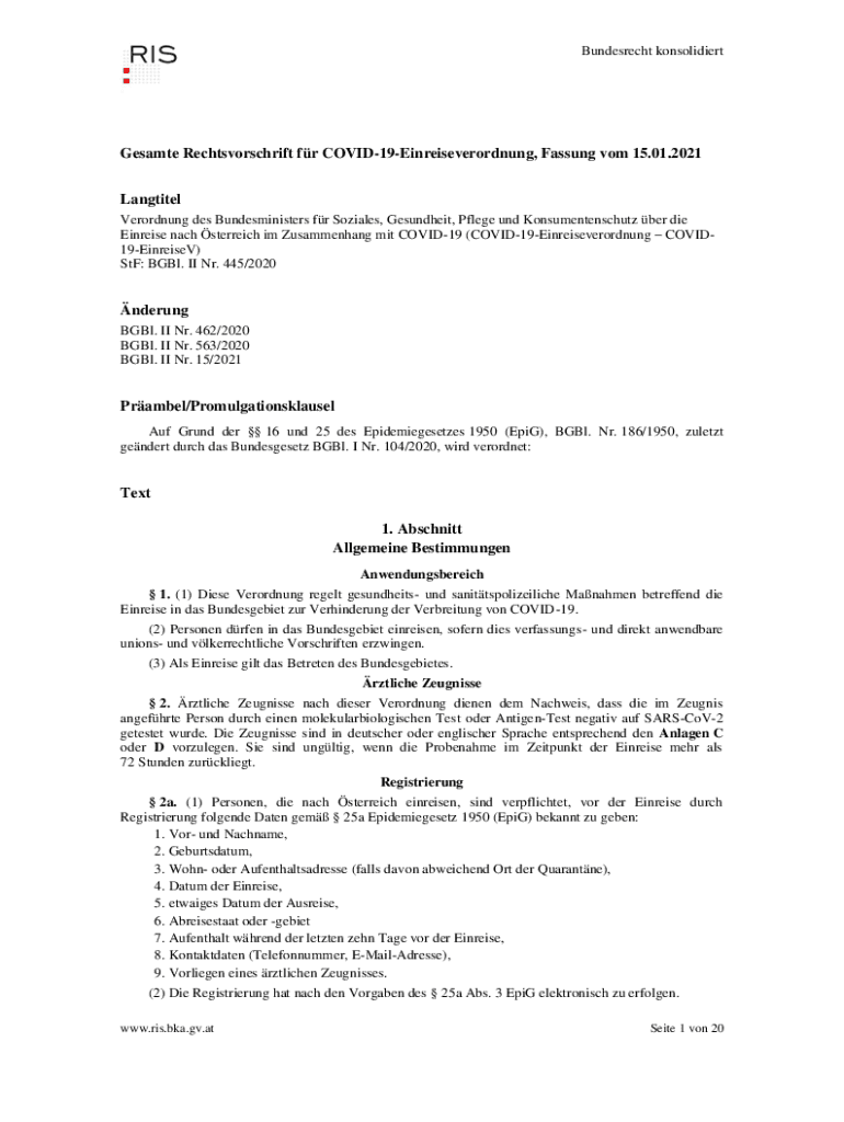 Bundesrat konsolidiertGesamte Rechtsvorschrift for COVID19Einreiseverordnung, Passing com 15.01.2021 Longtime Verordnung DES Bundesministers for Socials, Gesundheit, Flee UND Konsumentenschutz BER