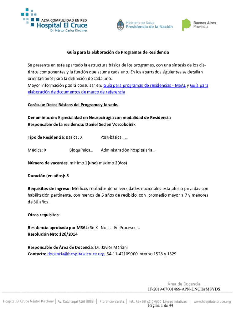 GUA para la elaboration DE Programs de Residencia Se present en ester apart ado la structure basic de Los programs, con RNA synthesis de Los distinct components y la function Que assume CADA UNO.