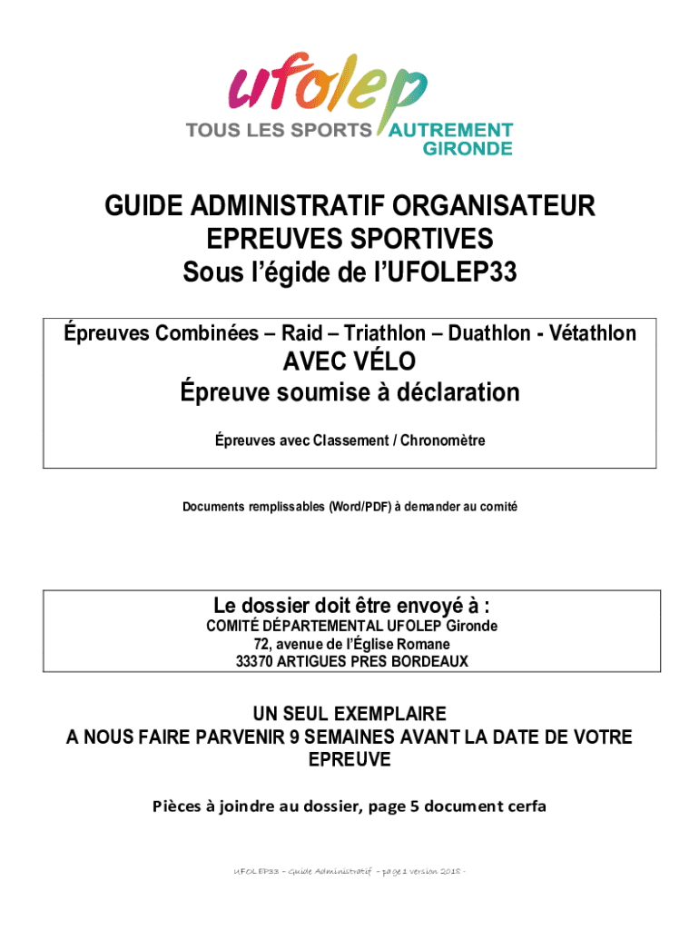 GUIDE ADMINISTRATION ORGANISATEUR EXPRESSES SPORTIVE Sous glide de lUFOLEP33 presses Combines Raid Triathlon Biathlon VtathlonAVEC VLF prove soubise declaration presses Alec Casement / ChronomtreDocuments