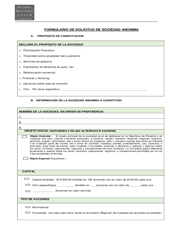FORMULA RIO DE SOLICITED DE SOCIETAL ANON IMA A.PROPOSING DE CONSTITUCIONDECLARE EL PROPERTY DE LA SOCIETAL Participating financier Titularidad sober provided real y personal Services DE assort Explain