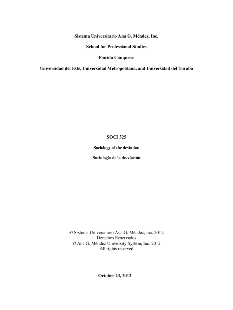 System Universitario Ana G. Mendez, Inc. School for Professional Studies Florida Campuses Universidad del Ester, University Metropolitan, and Universidad del TuraboSOCI 325 Sociology of the deviation