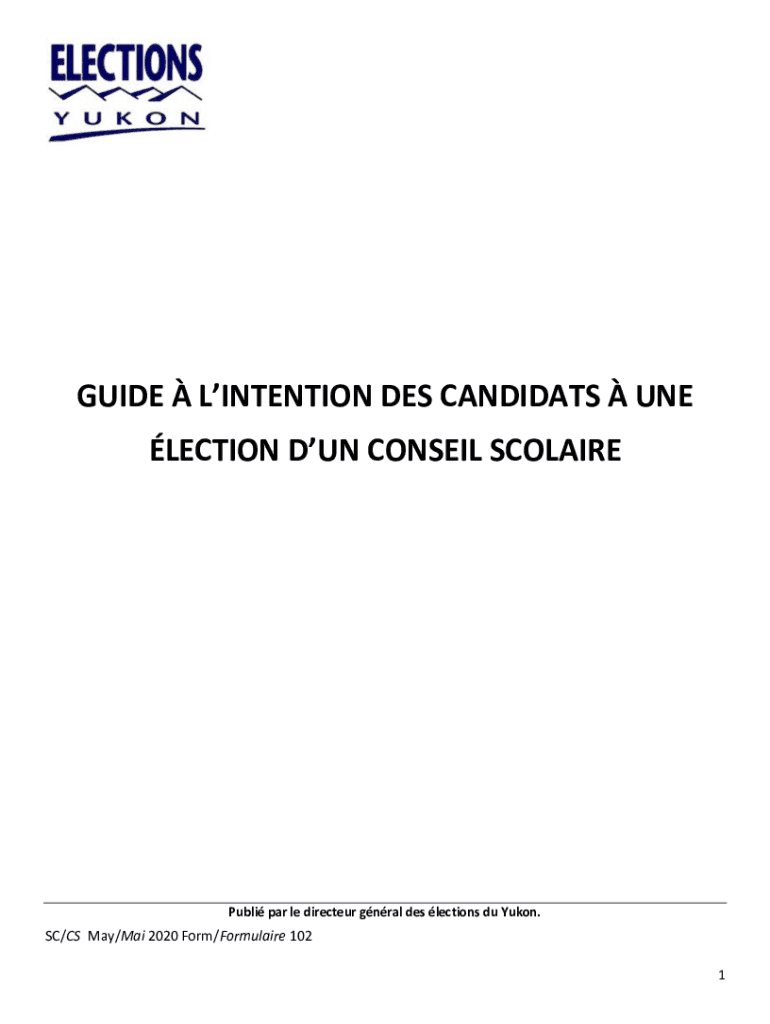 GUIDE INTENTION DES CANDIDATE UN ELECTION Don't CONSENT SCOLAIREPubli par LE directer gnarl DES elections Du Yukon. SC×CS May×Mai 2020 Form×Formula ire 102 1GUIDE INTENTION DES CANDIDATE UN ELECTION