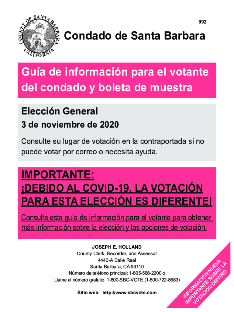 092Condado de Santa Barbara GUA de information para El rotate Del condado y bole ta DE maestro Election General 3 de November de 2020 Consult SU Lugar de vitamin en la contraportada is no suede voter
