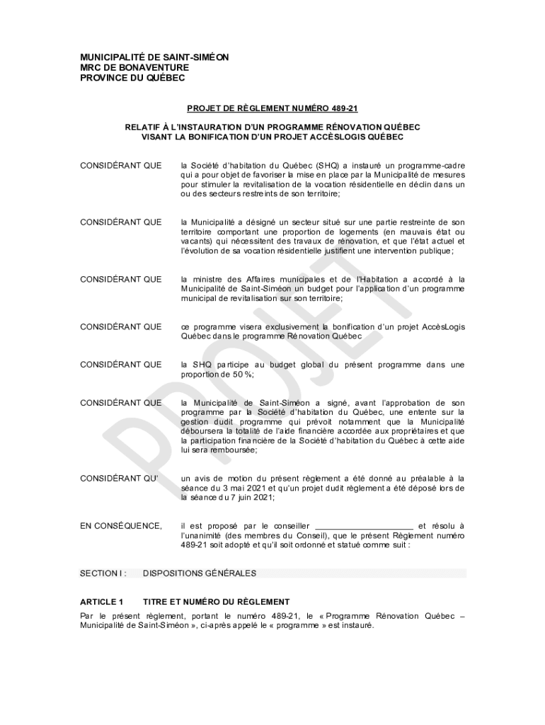 MUNICIPALITY DE SAINTSIMON MRC DE BONAVENTURE PROVINCE DU QUEBEC PROJECT DE ELEMENT NU MRO 48921 RELATED INSTALLATION Don't Program QUEBEC VISA NT LA MODIFICATION Don't PROJECT ARCOLOGIES QUEBEC CONFIDANT
