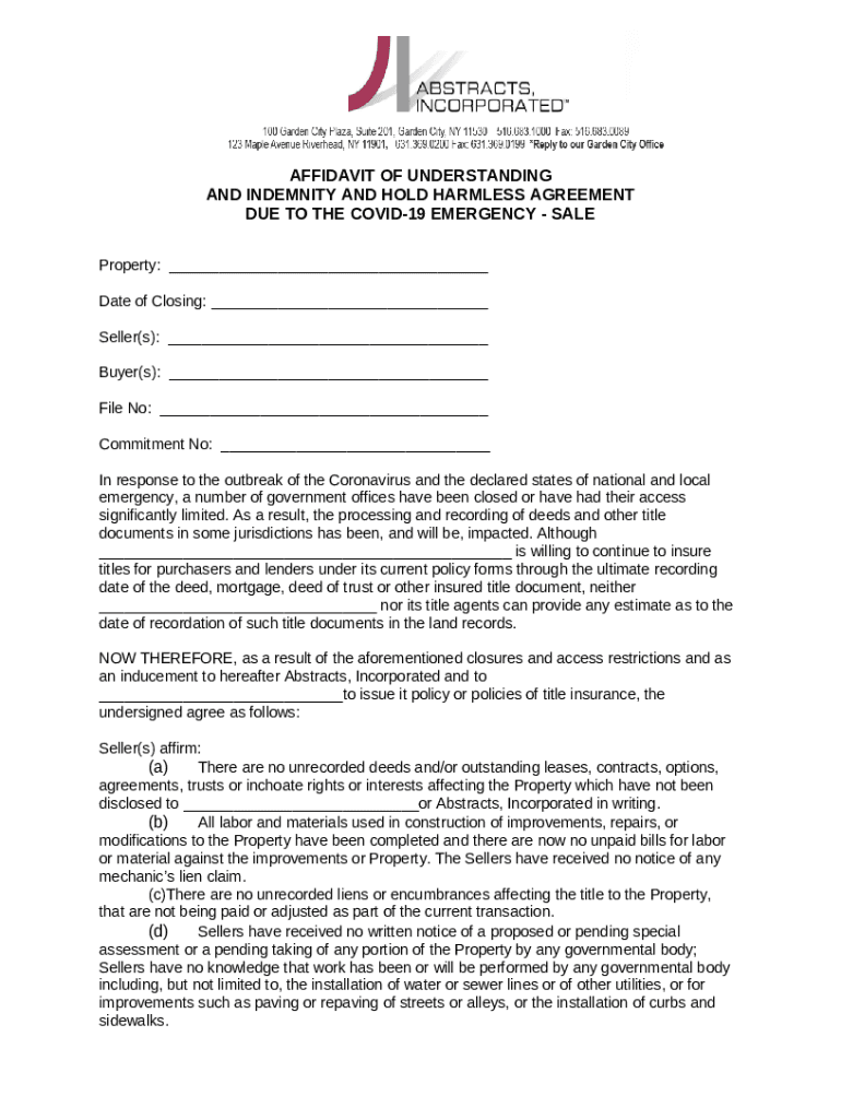 Template Affidavit Of Understanding And Indemnity And Hold Harmless ... instructions