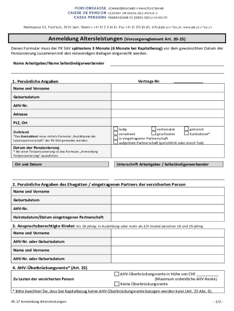 Amending Altersleistungen (Vorsorgereglement Art. 2025) Daises Formula muss her PK SAV Stevens 3 Monte (6 Monte BEI Kapitalbezug) VOR them gewnschten Datum her Pensioning dustmen MIT den notwendigen