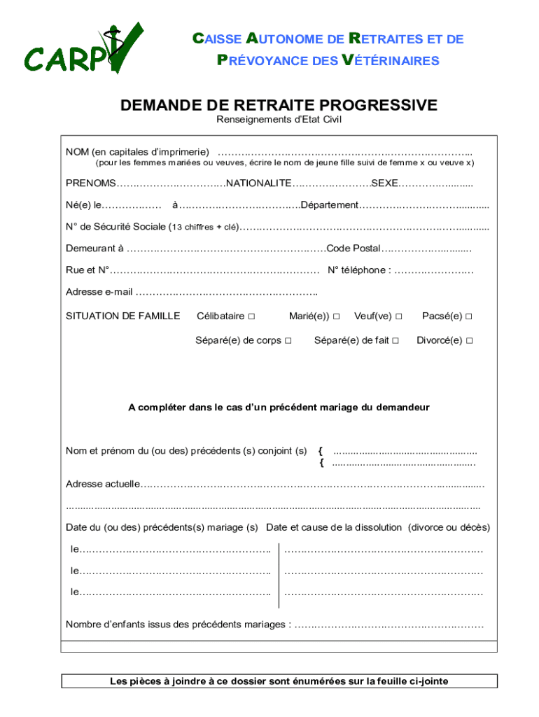 Get the free DEMANDE DE RETRAITE PROGRESSIVE - CARPV