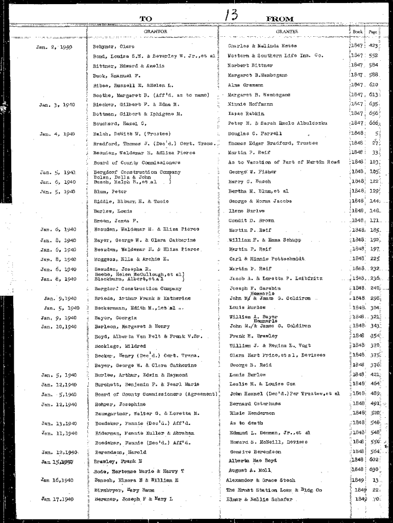 FROM], iGRANTORGRANTEEif Book : Paget1rL \”\'. \' ... 1t...., .,....., ..... \”\” .......:... ........j\'7., .... (, Jan. 2, 199PBehymer, Clara. I !\'.: Bond, Louisa s.w. & Beverley W. Jr.,