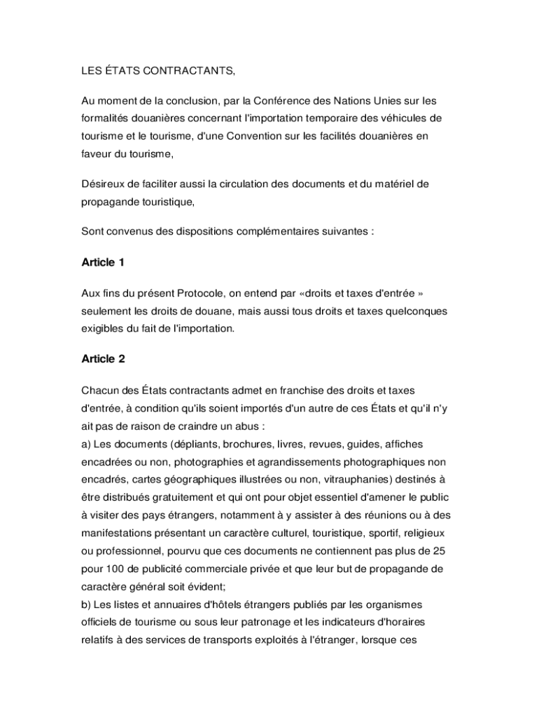LES TATS CONTRACT ANTS, Au moment DE la conclusion, par la Conference DES Nations Units SUR LES formality womanizes concern ant l\'importation temporary DES vehicles DE tourism et LE tourism, d\'one