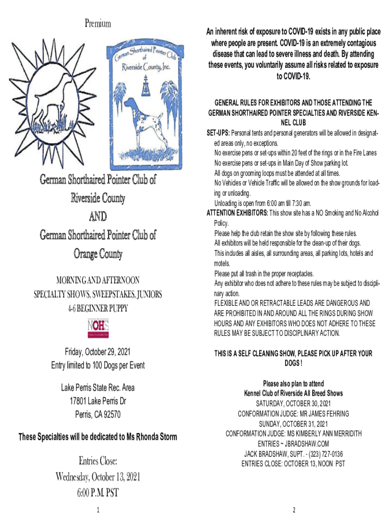 Get the free PDF German Shorthaired Pointer Club of Riverside County AND German ...