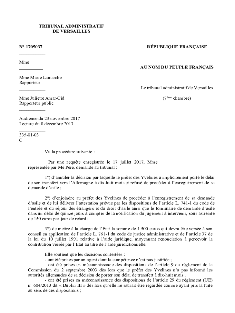 Get the free TRIBUNAL ADMINISTRATIF DE VERSAILLES N 1705037 - GISTI