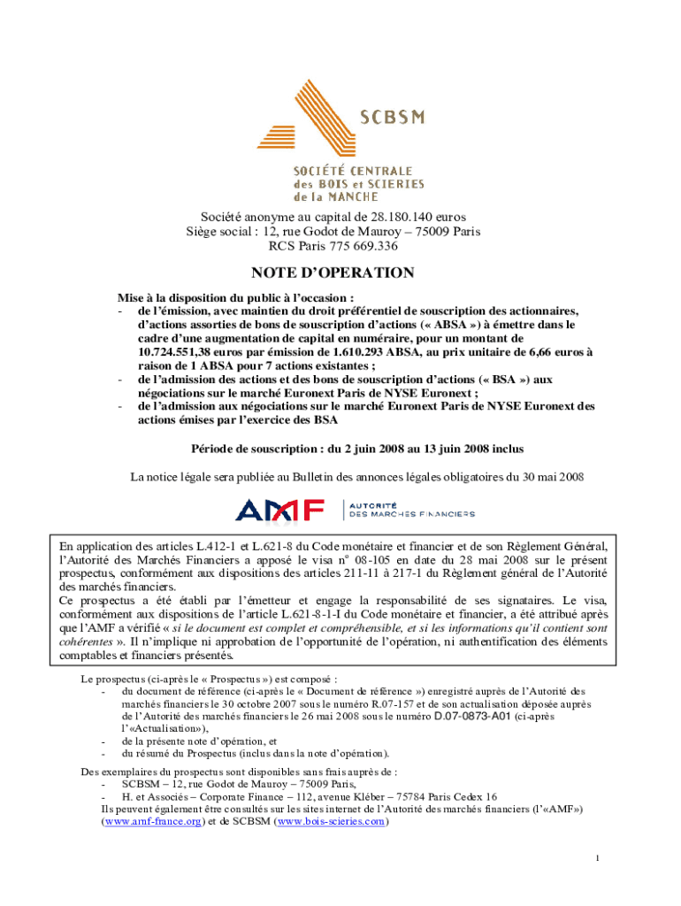 So cit antonym AU capital DE 28.180.140 euros Side social : 12, rue Godot de Mauroy 75009 Paris RCS Paris 775 669.336NOTE OPERATION Mile la disposition Du public occasion : DE mission, Alec maintain