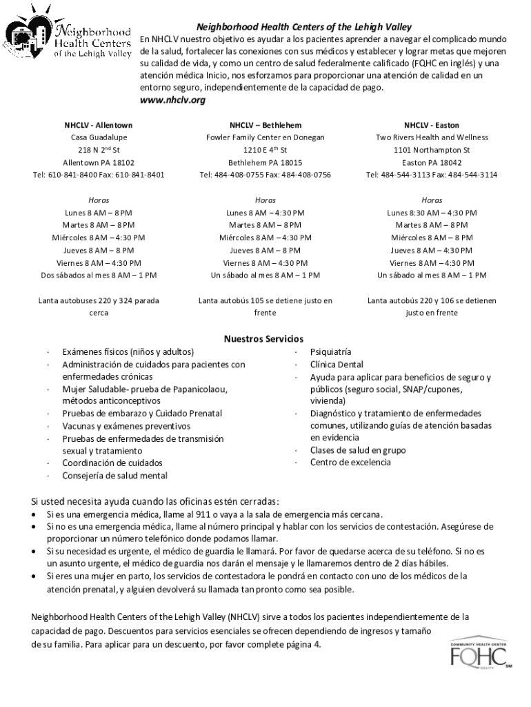 Get the free Neighborhood Health Centers of the Lehigh Valley - YOUR ...