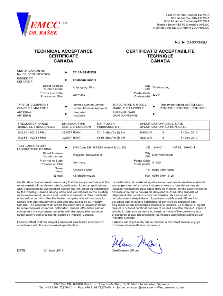 Get the free Notified Body Directive 99/5/EC EMCC FCB under the Canada ...