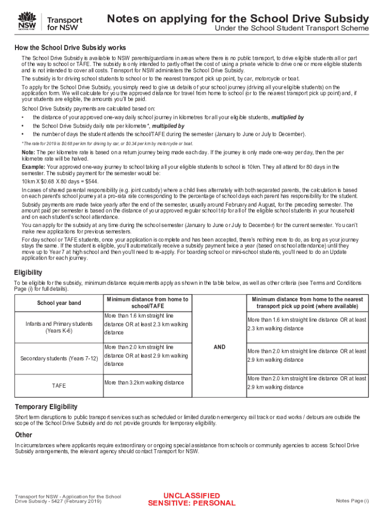 Notes on applying to the School Drive Subsidy Under the School Student Transport Scheme the School Drive Subsidy works The School Drive Subsidy is available to NSW parents×guardians in areas where