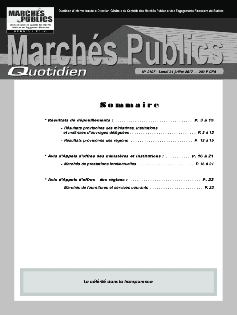 Quotidian information DE la Direction GRALE Du Control DES March's Public set DES Engagements Financiers du BurkinaDirection GRALE Du Control DES March's Public set DES Engagements Financiers Burkina
