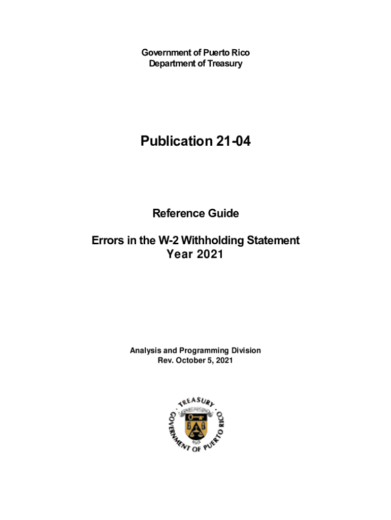 Government of Puerto Rico Department of TreasuryPublication 2104Reference Guide Errors in the W2 Withholding Statement Year 2021Analysis and Programming Division Rev. October 5, 2021Introduction This