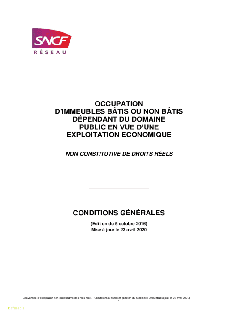 OCCUPATION D\'IMMERSES BTI SOU NON OTIS PENDANT DU DOMAIN PUBLIC EN DUE DUNE EXPLOITATION ECONOMIZE NON-CONSTITUTIVE DE DROIDS RELY___CONDITIONS GRADES (Edition Du 5 October 2016) Mile four LE 23