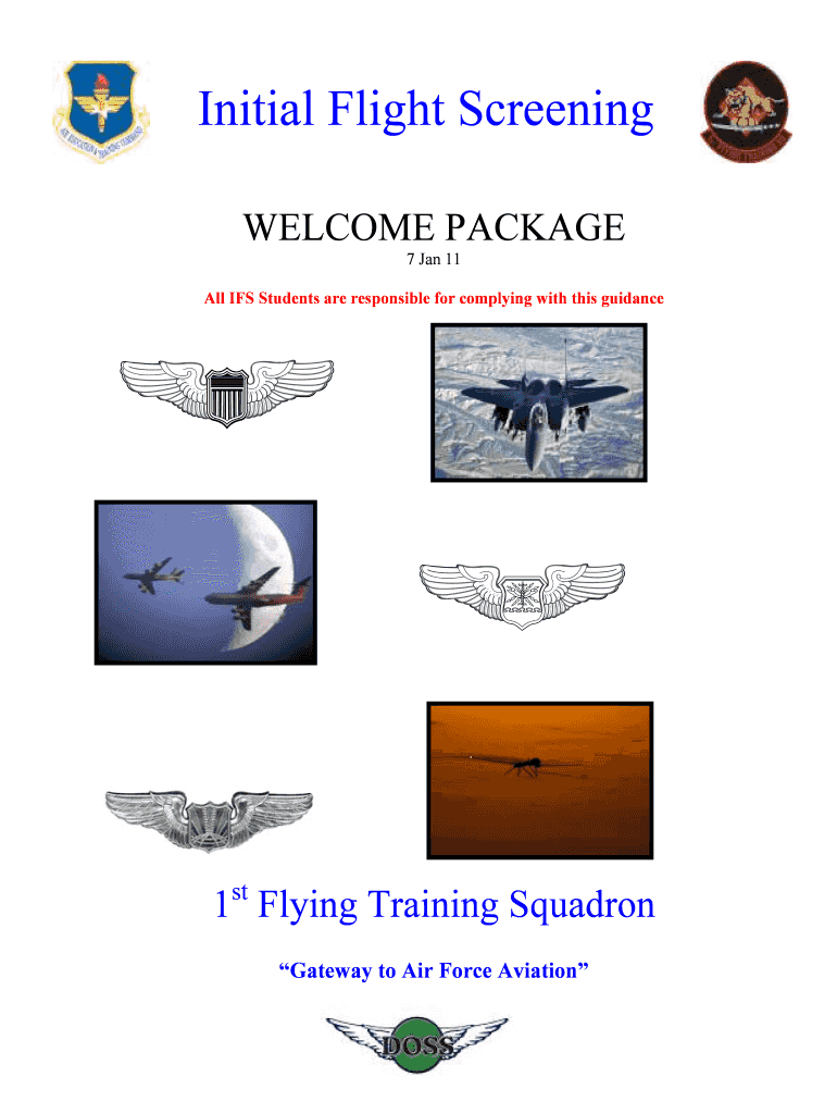 Initial Flight Screening WELCOME PACKAGE 7 Jan 11 All IFS Students are responsible for complying with this guidance 1st Flying Training Squadron Gateway to Air Force Aviation DEPARTMENT OF THE AIR