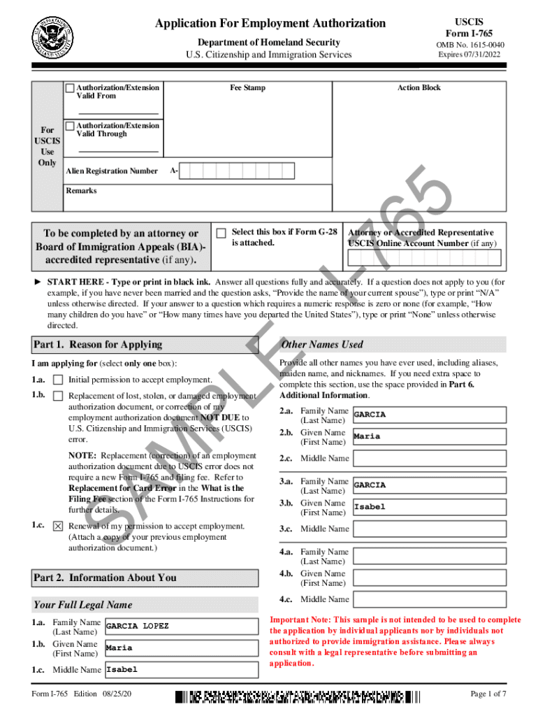 Get the free Form I-765 Employment Authorization Application - OMB.report